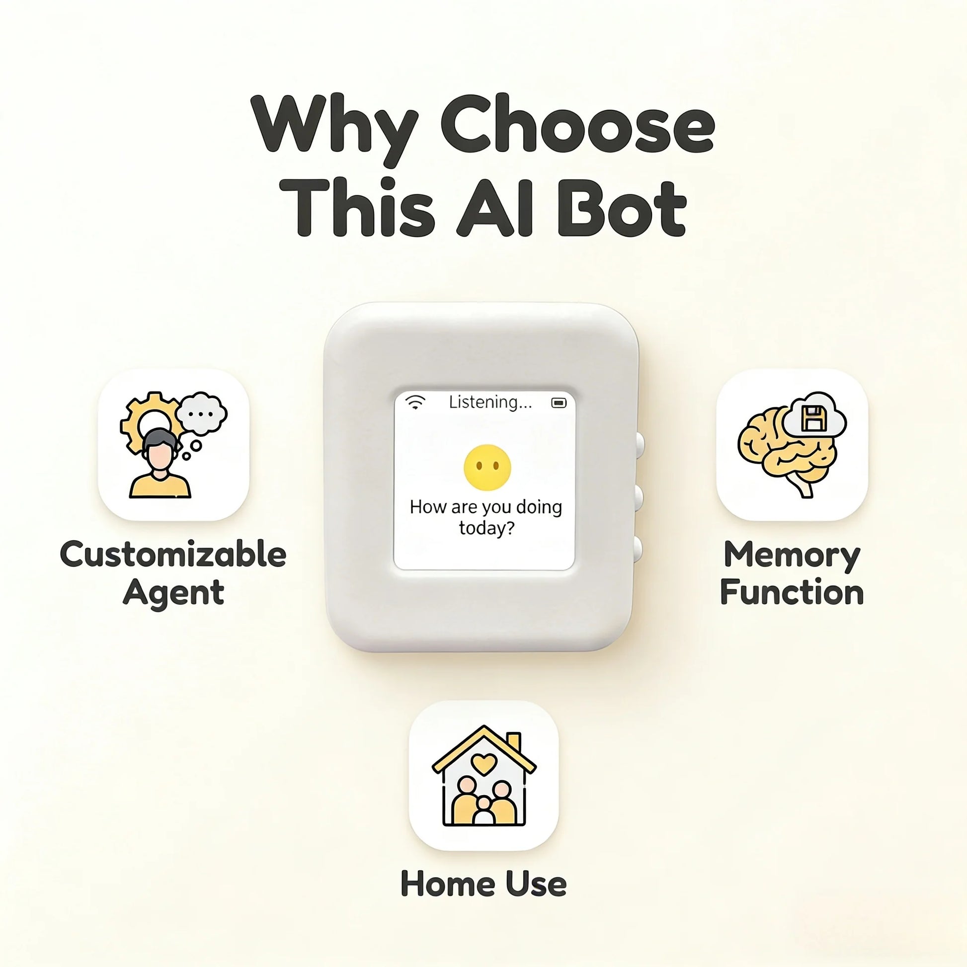 • Customizable AI Vibe: Tweak its personality, tone, even its ā€œroleā€ however you want. Want a chill bestie, an energetic hype person, or a no-nonsense advisor? Or perhaps a feisty character who bickers with you, leaving you both laughing and crying? It’ll match that vibe perfectly. Simply log in to the settings website in the instruction manual to customize the character settings.